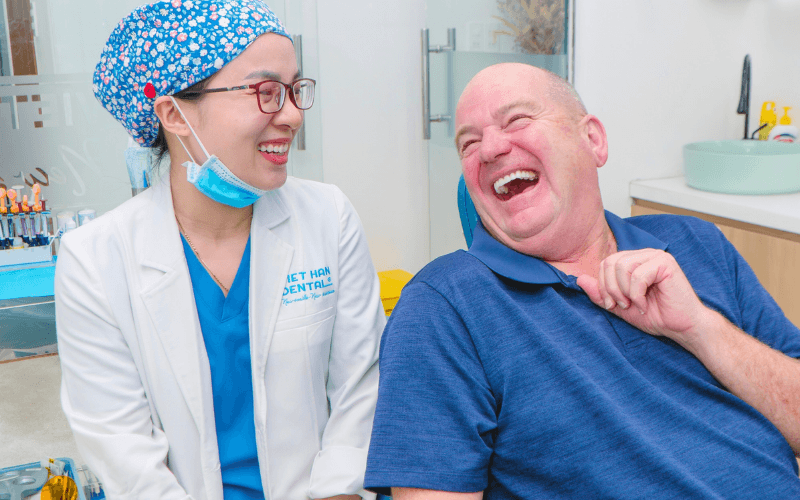 "Dịch vụ tuyệt vời cho Việt kiều! Mình từ Mỹ bay về Nha Trang để thực hiện làm răng Implant toàn hàm tại Nha khoa Việt Hàn. Điểm mình ấn tượng nhất chính là sự hiện đại của máy móc và tay nghề của bác sĩ Quân."