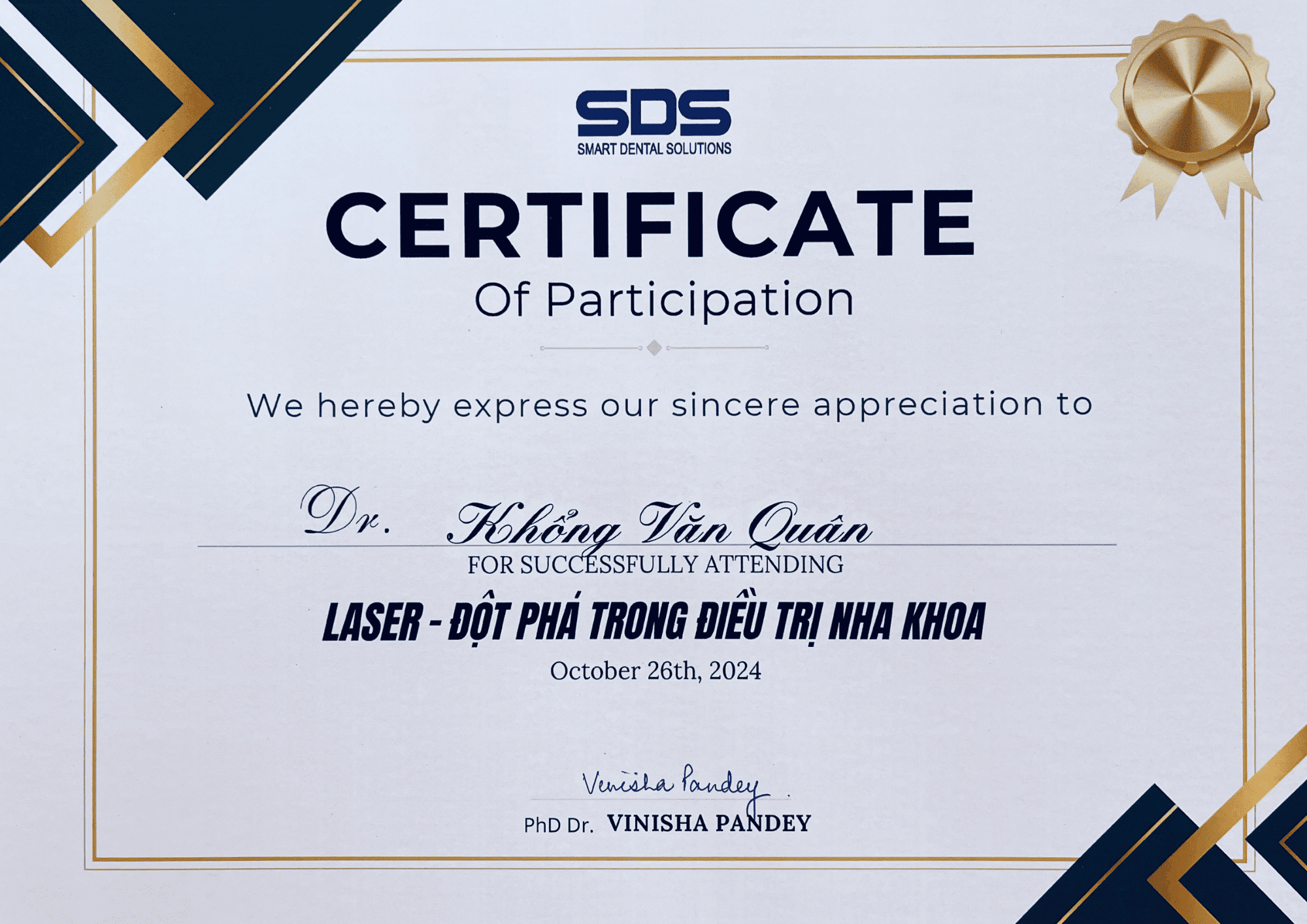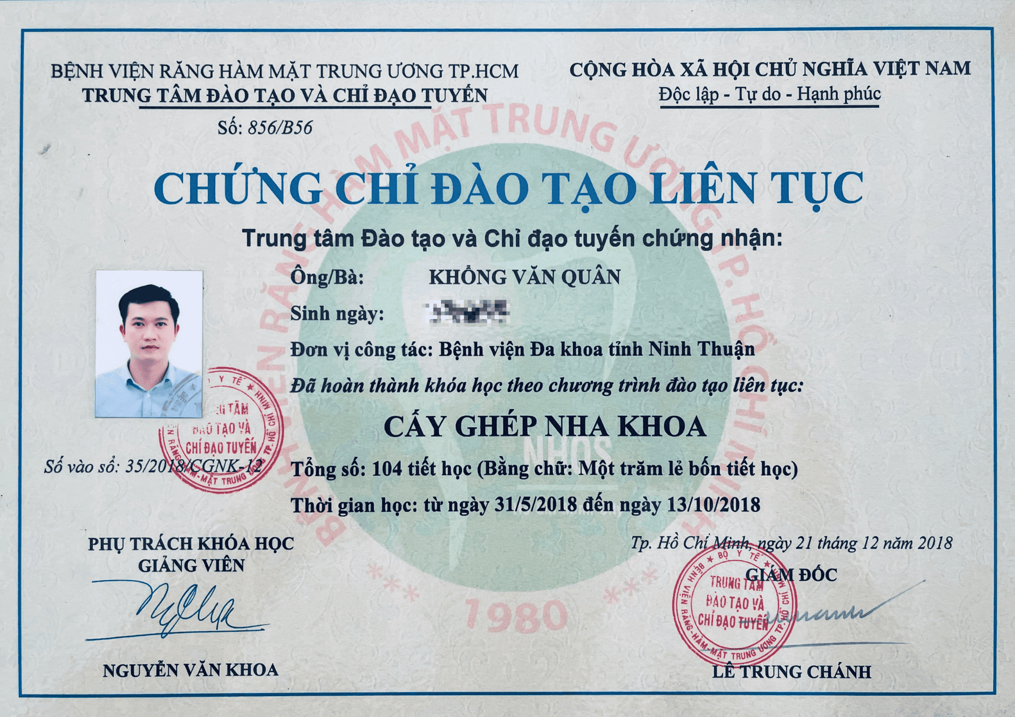 | Các chứng chỉ đào tạo liên tục về phục hình thẩm mỹ, cấy ghép implant, nha chu… |