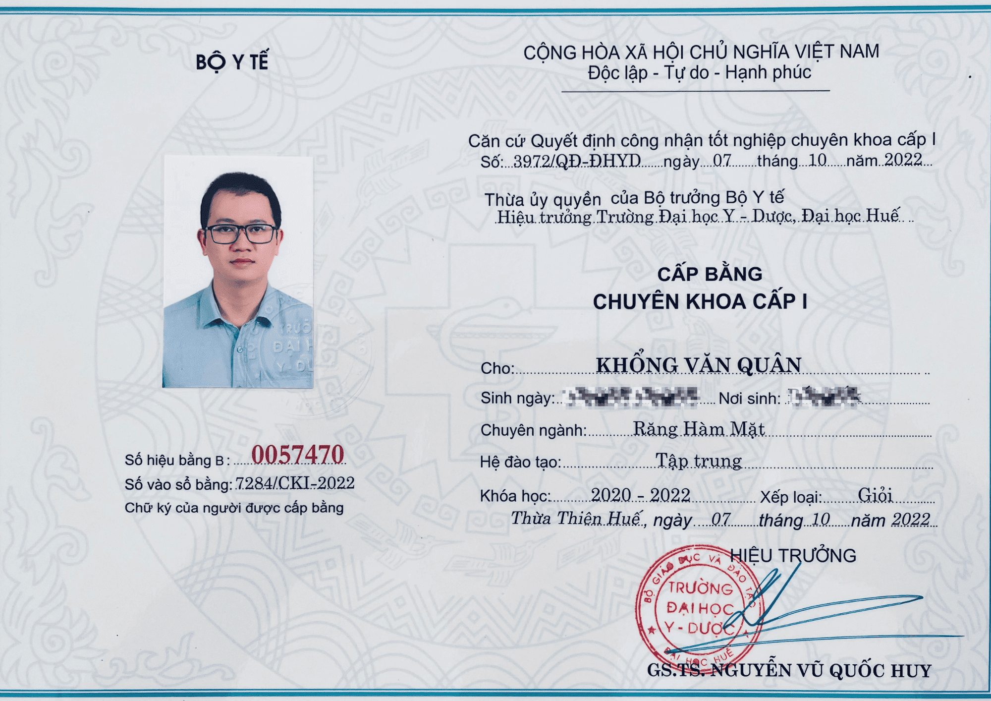 | Tốt nghiệp Bác sĩ Chuyên Khoa I – Đại học Y Dược Huế (2020-2022) |