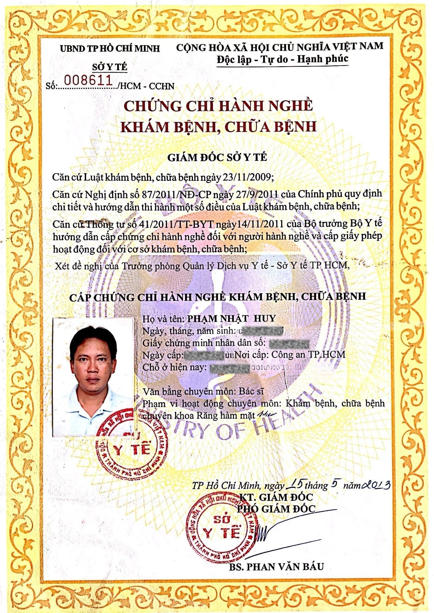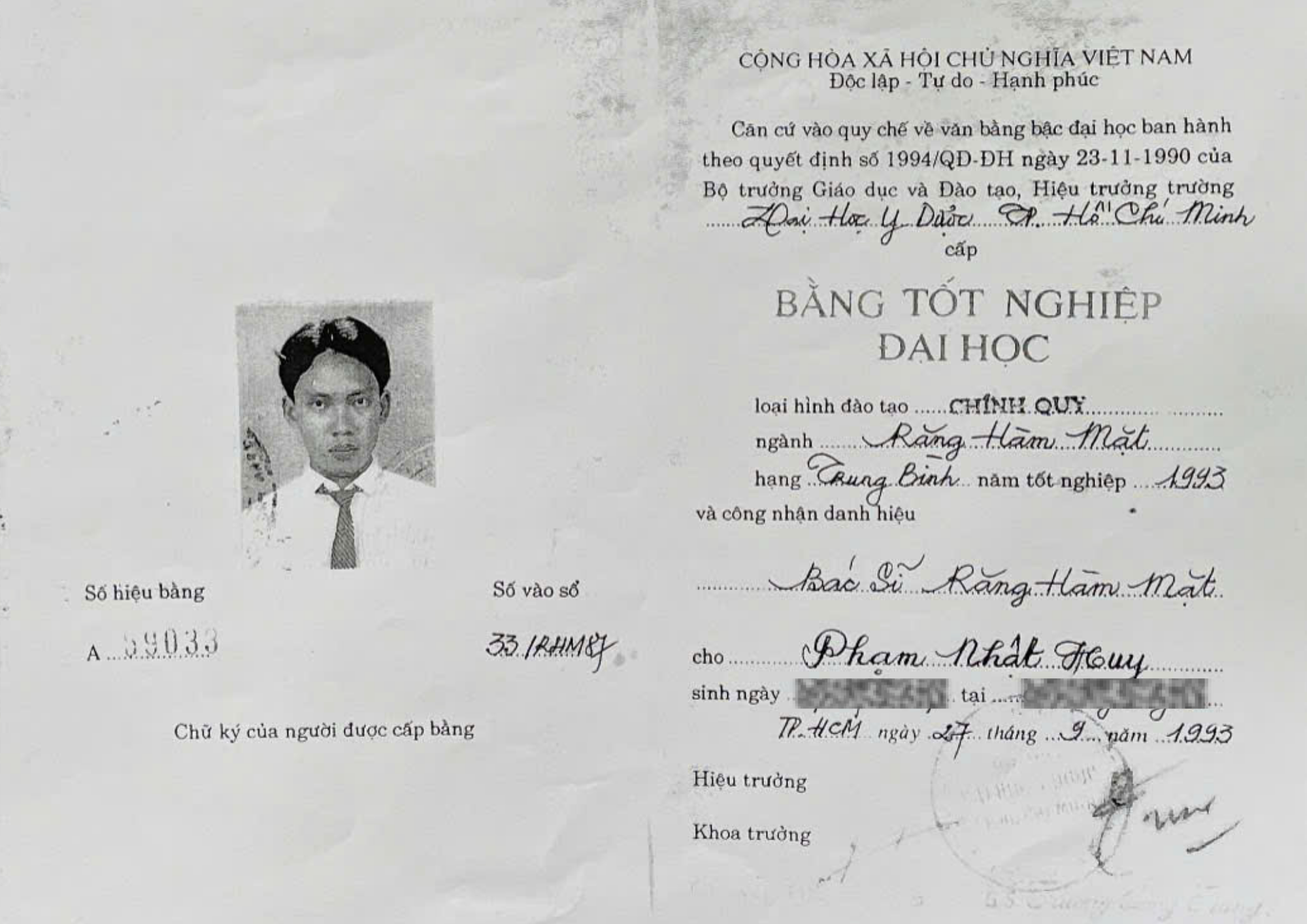 Doctor of Dental Medicine (DDS): Graduated from the University of Medicine and Pharmacy at Ho Chi Minh City (1987–1993) |